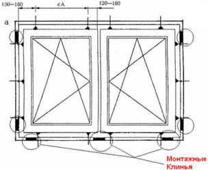Перемещая клин по клину выставить монтируемую деталь на необходимом уровне. Клинья ставятся вдоль оконного блока. | |